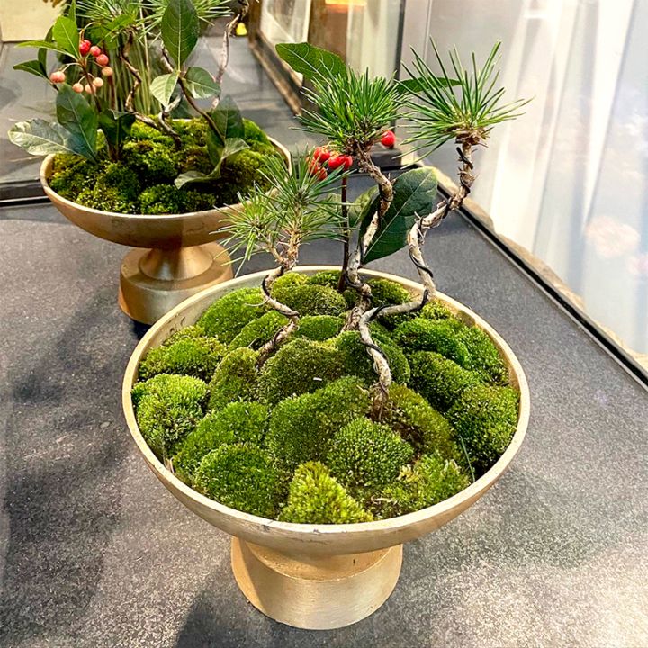 新しい年を清々しく迎えるための、季節の趣あふれる苔山アレンジです。